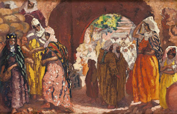 Femmes au village , sud algérien - Paul Cirou (Français - 1869-1951) - Huile sur panneau - 34,5 x 60 cm